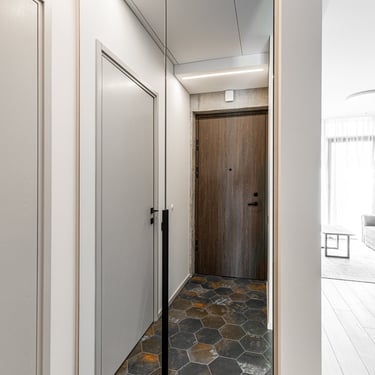 Tambūro spintos fasadai: sidabrinis veidrodis