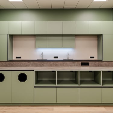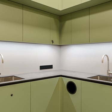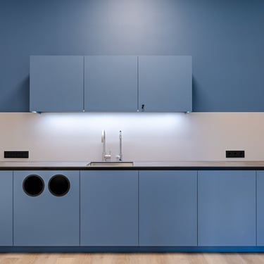 Virtuvinių baldų fasadai ir lentynos - Egger LMDP U502/ST9 (mėlyna) ir Egger LMDP U604/ST9 (žalia)